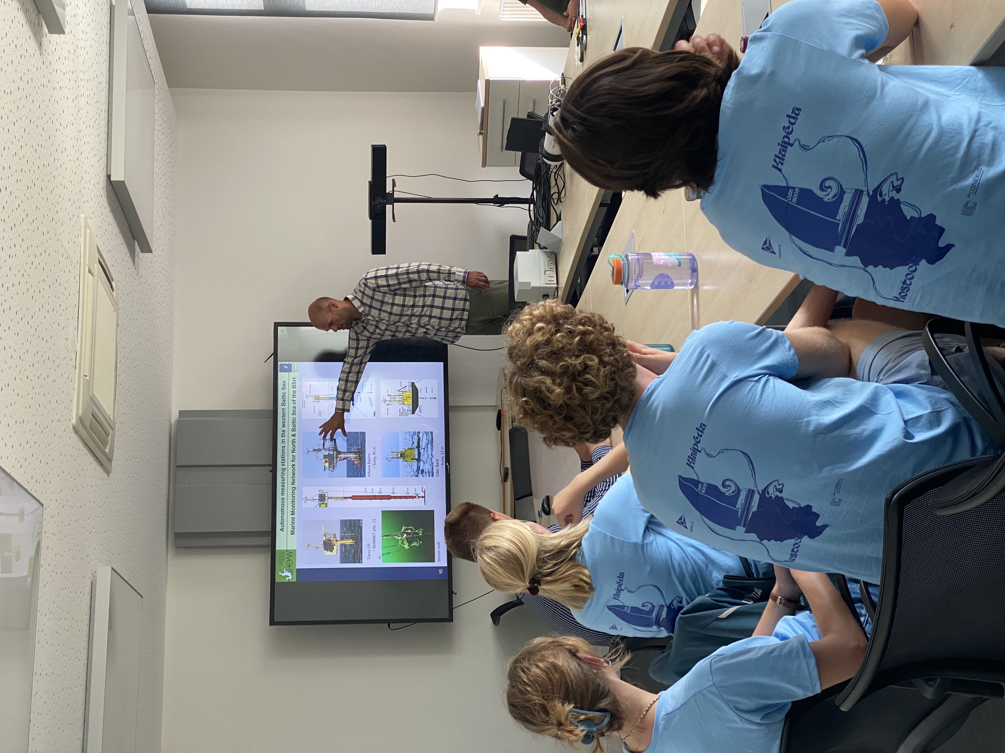 Am Nachmittag besuchte die Gruppe das Leibniz-Institut für Ostseeforschung Warnemünde (IOW). Dort erhielten die Studierenden spannende Einblicke in die langfristige Ostseeforschung: Seit über 55 Jahren werden hier kontinuierlich Daten zu Temperatur, Sauerstoff, Salzgehalt, Trübung und weiteren Umweltparametern gesammelt. Außerdem lernten sie das Sensorgerät kennen, das sie auf der Reise einsetzen werden. Mit diesem kompakten Messgerät werden die Studierenden selbst zu Citizen Scientists und sammeln Daten, die nicht nur für die Forschung, sondern auch für die Fischerei von Bedeutung sind. Das Gerät ist Teil eines Open-Source-Projekts, das weltweit genutzt werden kann.