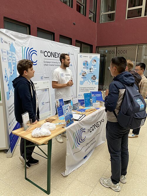 Beim Campustag 2025 war EU-CONEXUS erneut mit einem Informationsstand vertreten, um Studierenden der Universität Rostock Einblicke in die internationalen Lehr- und Austauschformate der europäischen Hochschulallianz zu geben.