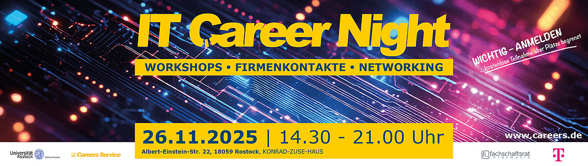 Die IT Career Night - 2025 bereits zum 14. Mal schafft den idealen Rahmen, damit sich zukünftige Fachkräfte mit interessanten Arbeitgebern des Landes M-V auf fachlicher Ebene austauschen können.