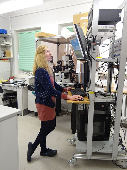 Denise Franz, Doktorandin am Lehrstuhl für Biophysik an der Universität Rostock, arbeitet im Rahmen ihrer Forschungen zusammen mit der Axiogenesis AG, einem Biotechnologieunternehmen, an der elektrophysiologischen Charakterisierung von Neuronen, die aus  Stammzellen generiert wurden. Ziel ihrer Arbeiten war die Untersuchung der humanen Neurone auf ihre Eignung als Alternative zu embryonalen Neuronen, die z. B. aus Mäusen oder Ratten gewonnen werden.