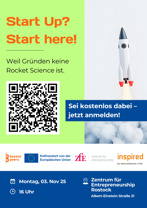 Im Wintersemester 2025/26 findet das Event “Start Up? Start here! - Weil Gründen keine Rocket Science ist.” statt, das für Studierende der Hochschule und andere Interessierte eine erste Gelegenheit darstellt, sich über die Möglichkeiten des Gründens zu informieren und Kontakte zu knüpfen.