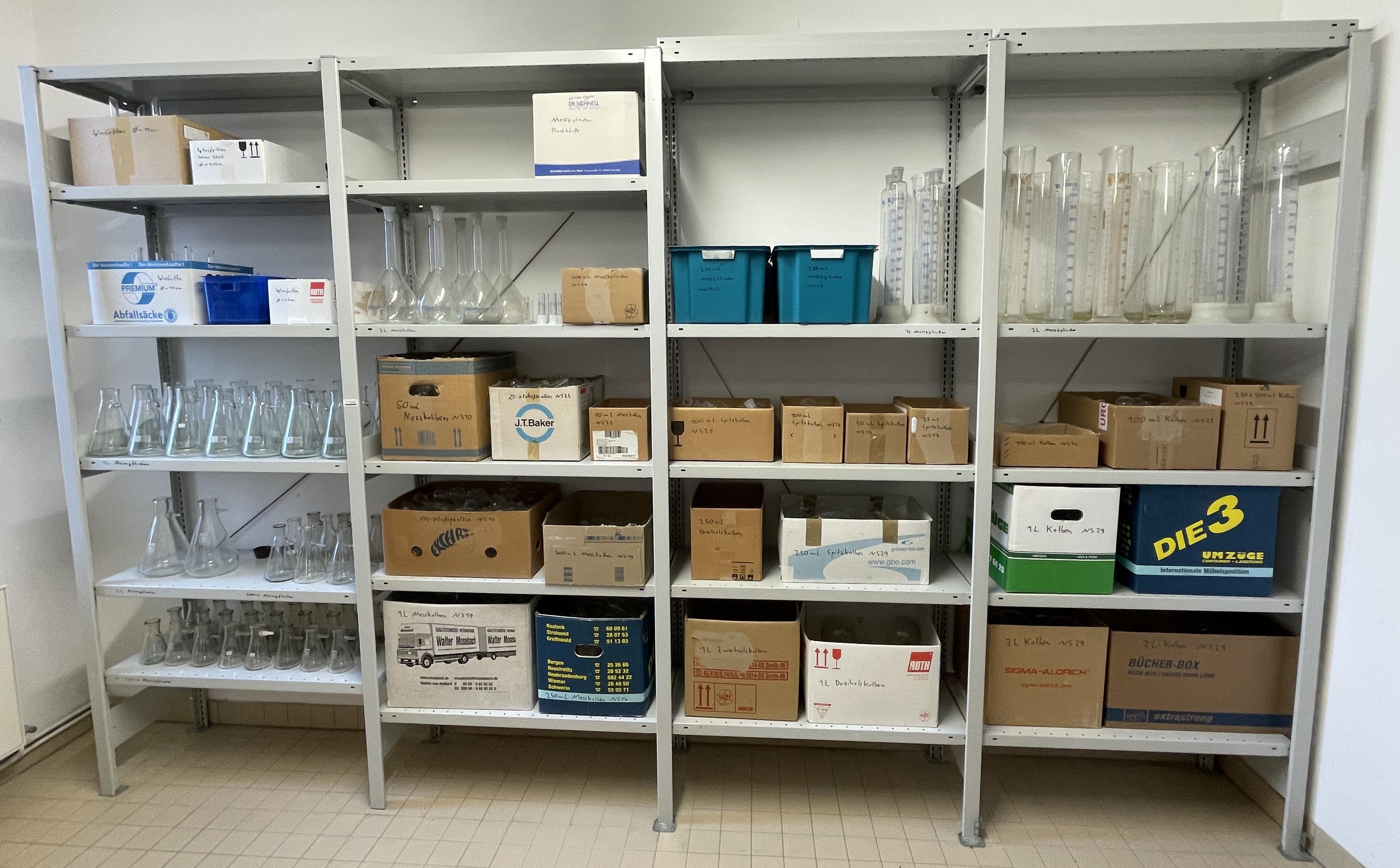 Entsorgte Laborglasgeräte, die im Entsorgungshof anfallen und für die Weiterverwendung brauchbar sind, werden zu der Glasbörse im Entsorgungshof hinzugefügt. Alle Glasgeräte in unserer Glasbörse können von Studierenden und Mitarbeitern der Universität Rostock angefragt und kostenfrei erhalten werden.